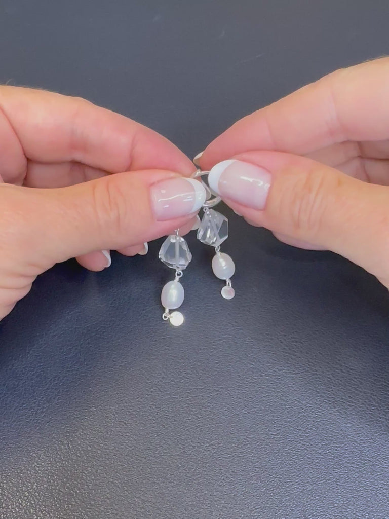 No brinco composto por uma pedra de quartzo branco e uma pérola natural no fotmato oval, temos uma combinação de energia e beleza com tons neutros perfeitos para acompanharem os seus dias.