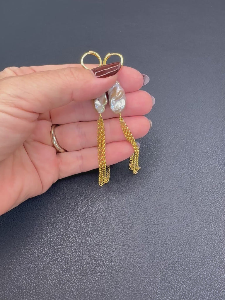 O Brinco Orgânico trás como novidade uma pérola escura, em tom próximo do roxo, de formato orgânico, difícil de descrever. Uma verdadeira obra de arte, sendo cada um completamente diferente do outro, compondo os pares de forma harmônica e única.
